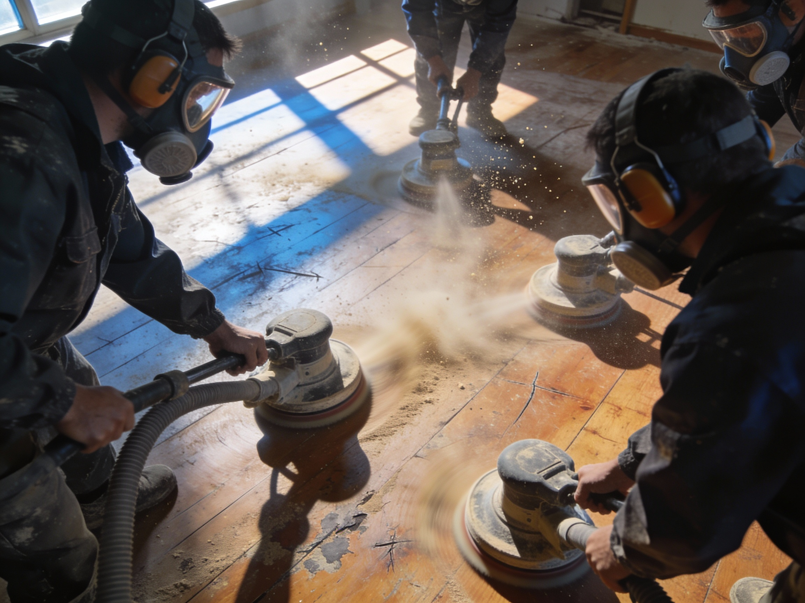 Дълбочинно шлайфане за отстраняване на неравности (“коремчета”) и старо покритие. Изравняваме пода до съвършенство, подготвяйки го за омасляване или лакиране.